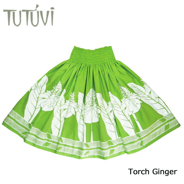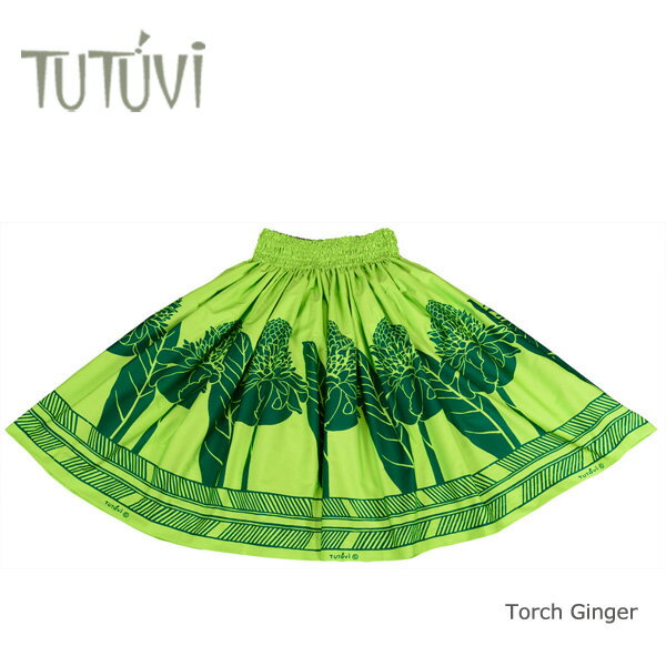 フラダンス衣装 パウスカート スカート フラ パウ オーダー お仕立て PFT034 TUTUVI パウ トーチジンジャー キウイ グリーン 緑*丈とゴムの入れ方をお選びください