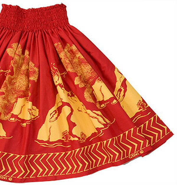 フラダンス衣装 パウスカート スカート フラ パウ オーダー お仕立て TUTUVIパウ PFT-366 ボルケーノフォグ レッド ゴールド 赤 黄*丈とゴムの入れ方をお選びください