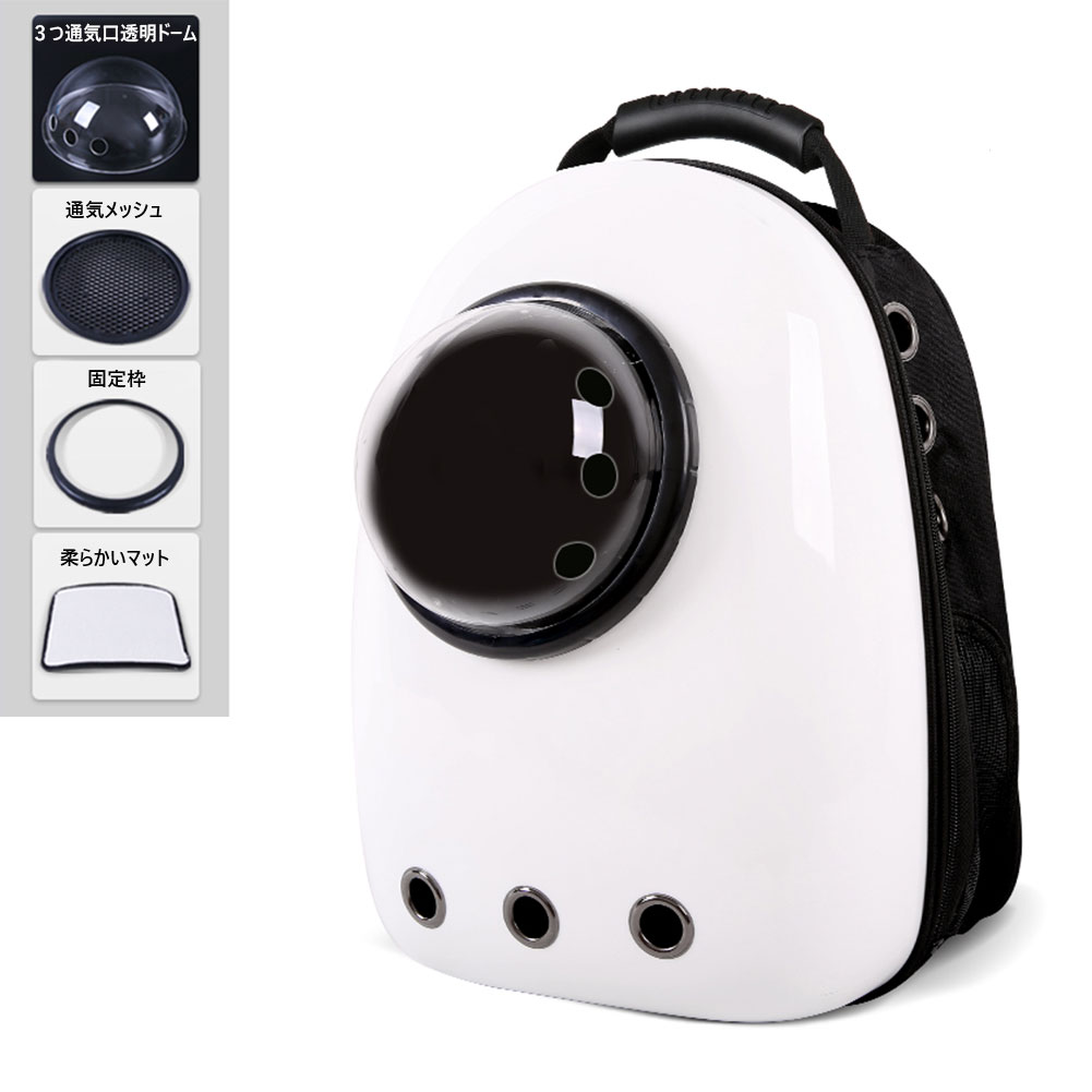 素材:PC+オックスフォード生地、裏地:ポリエステル サイズ:32×29×42cm 耐荷重:猫≤7KG 犬≤5KG カラー:イェロー、ブラック、ホワイト、レッドとホワイト、ピンク、ブルーとホワイト セット内容:キャリーリュック、透明ドーム型小窓、固定枠、通気メッシュ、マット ★