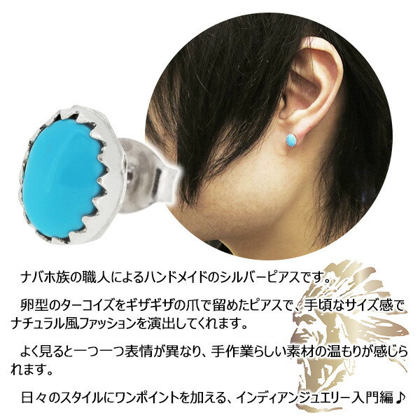 インディアンジュエリー ナバホ族 ターコイズ シルバーピアス 1P 片耳用 ハンドメイド ハンドクラフト ネイティブアメリカンジュエリー ナチュラル ストーンピアス シルバー925 銀細工 メンズ レディース