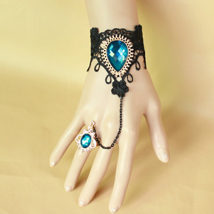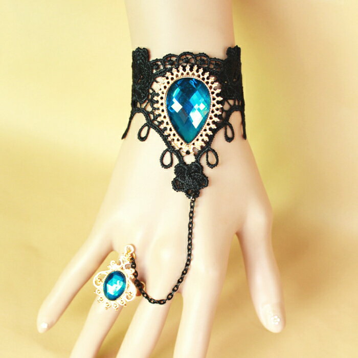 あす楽・即日発送が可能! (※条件つき) [黒][青] [フリーサイズ]商品説明 リング付きでゴージャスで華やかなレースブレスレット。